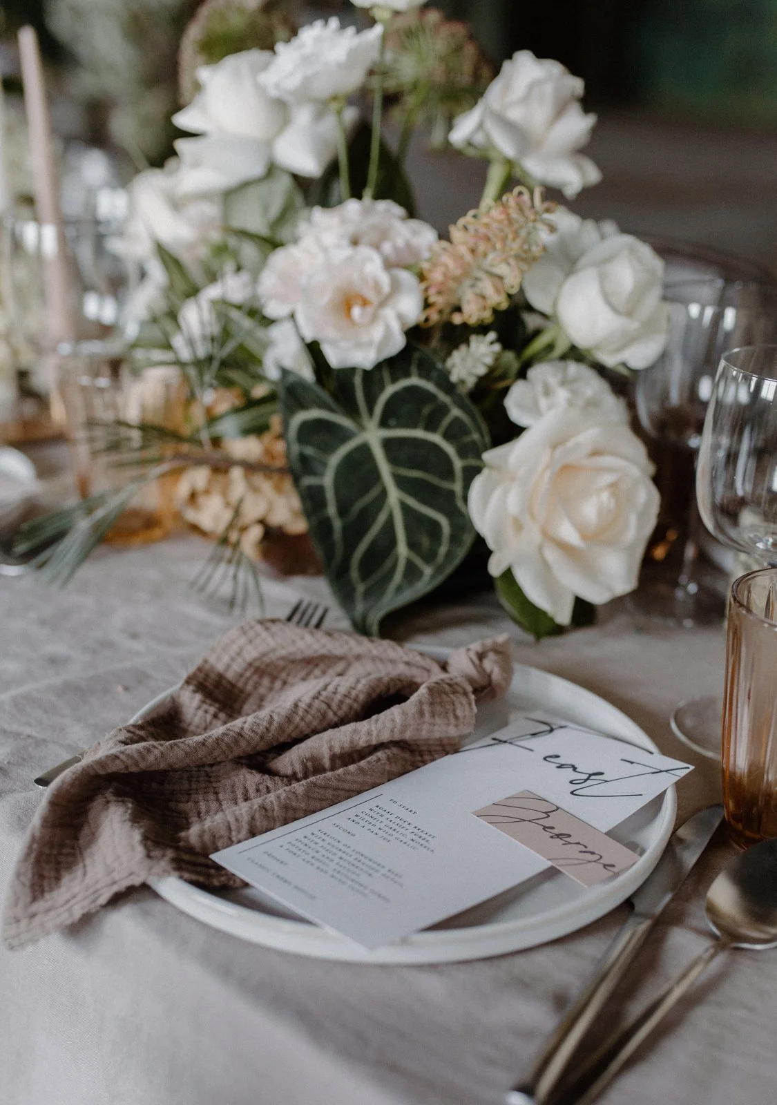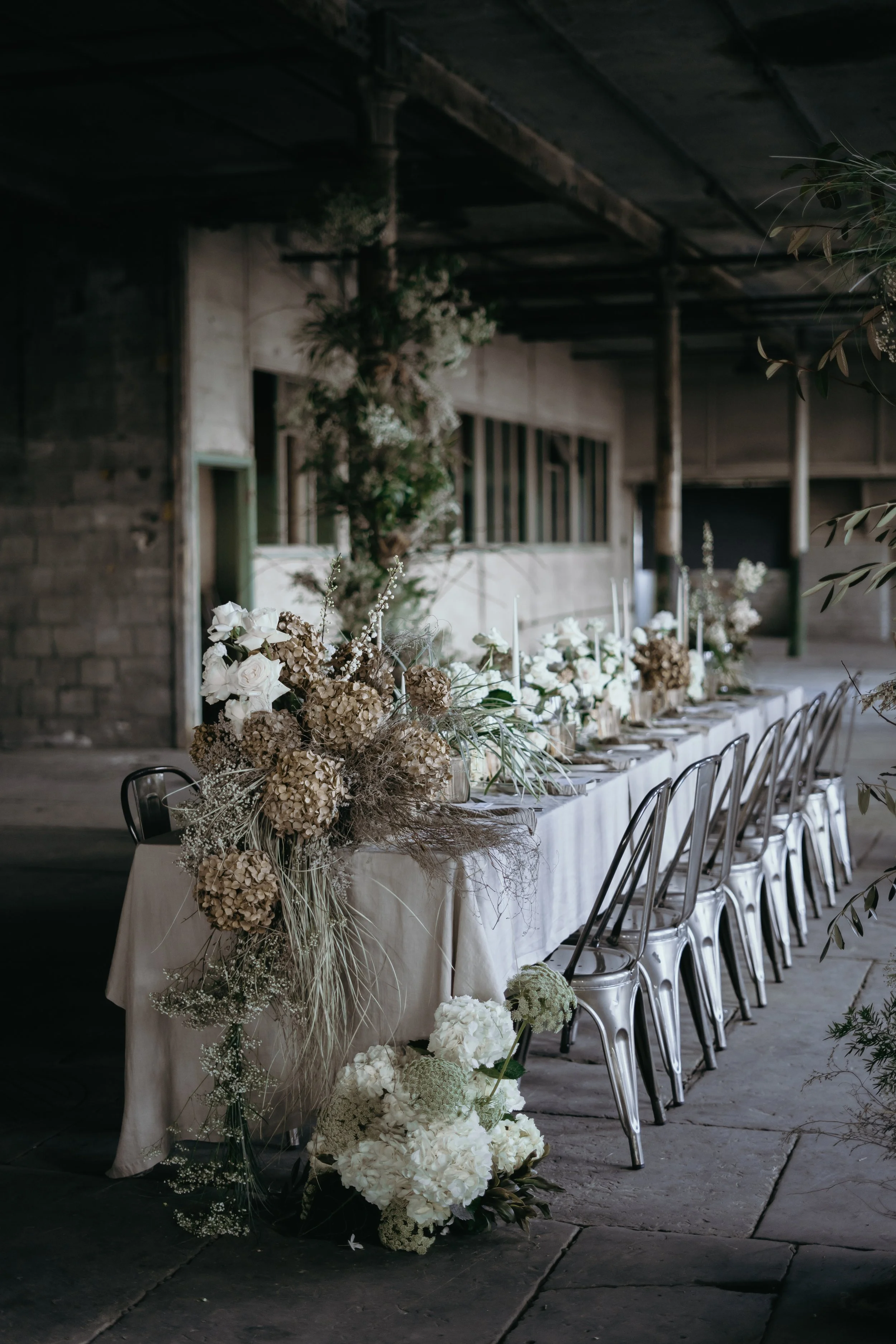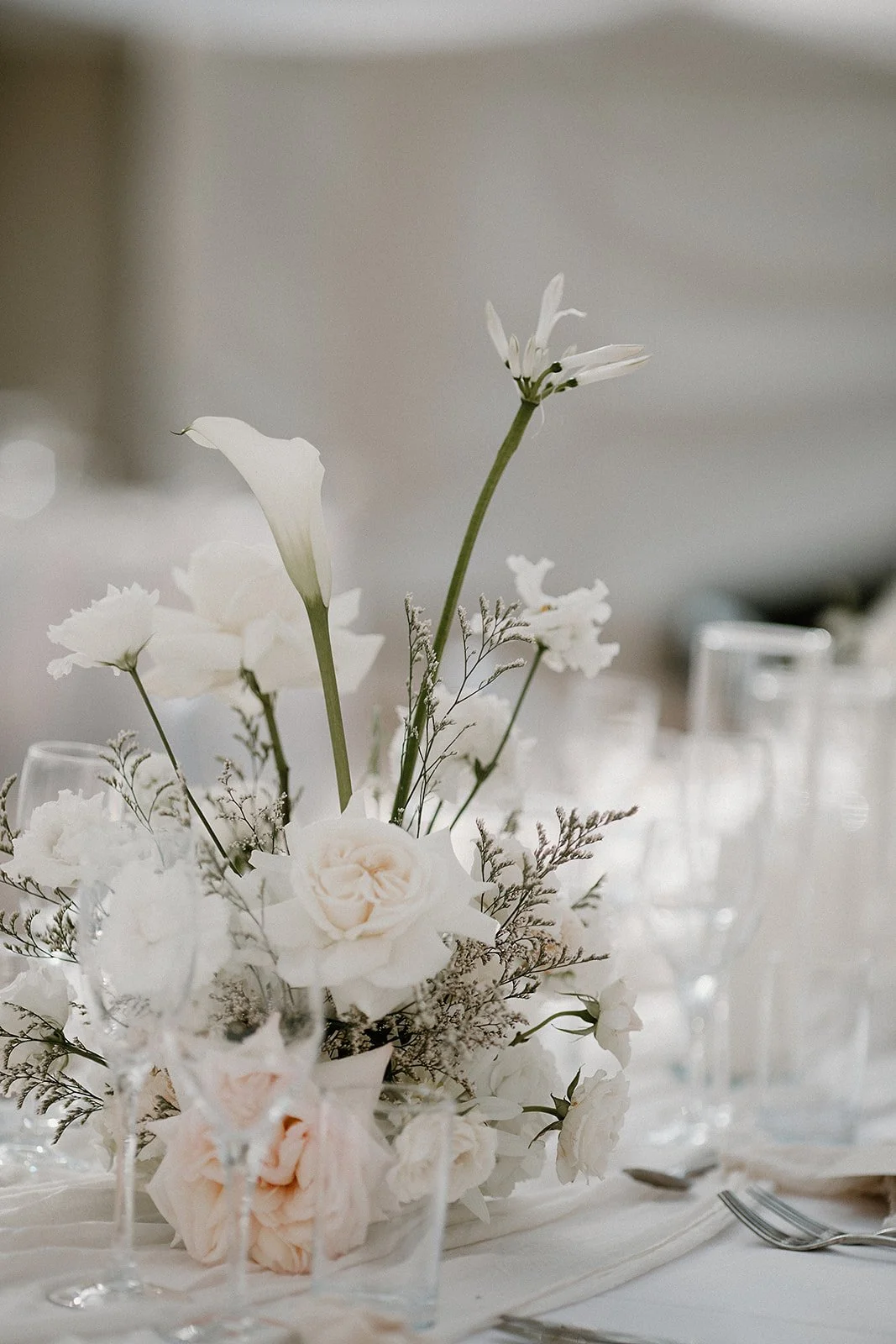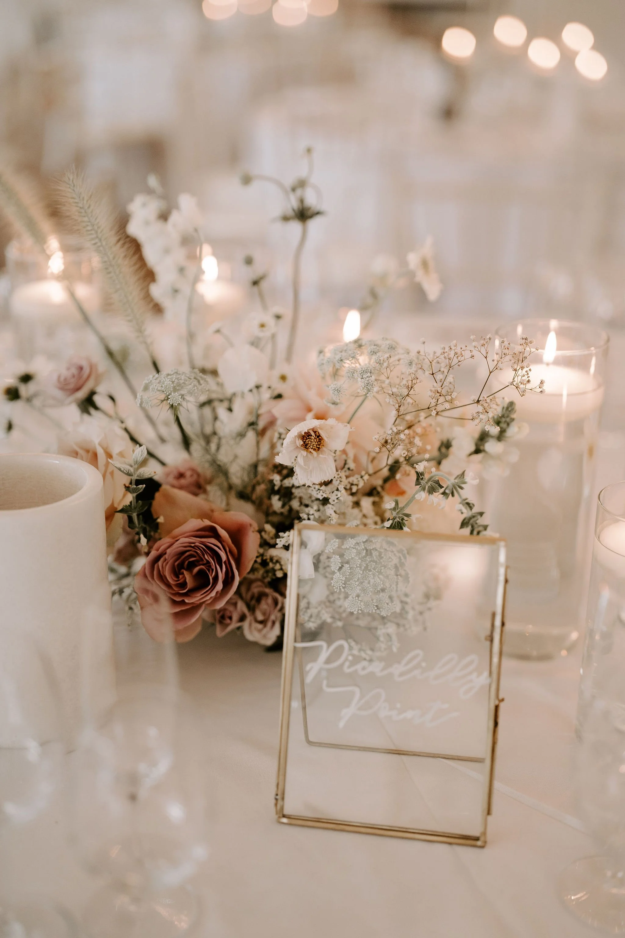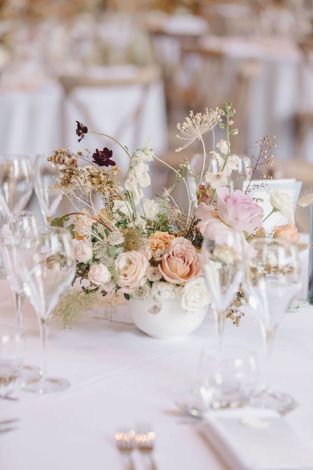 When it comes to centrepieces there’s a lot to think about… Are you having long trestle tables or round? How long are your trestle tables so we can calculate how much floral we can fit in the budget? Which vase, vessel or accessory colour suits your wedding theme? White, Terracotta, Gold, Grey, Glass or Black? Alternatively opt for floral made in an undetectable, disposable dish so you can take the flowers home with you in tact.
