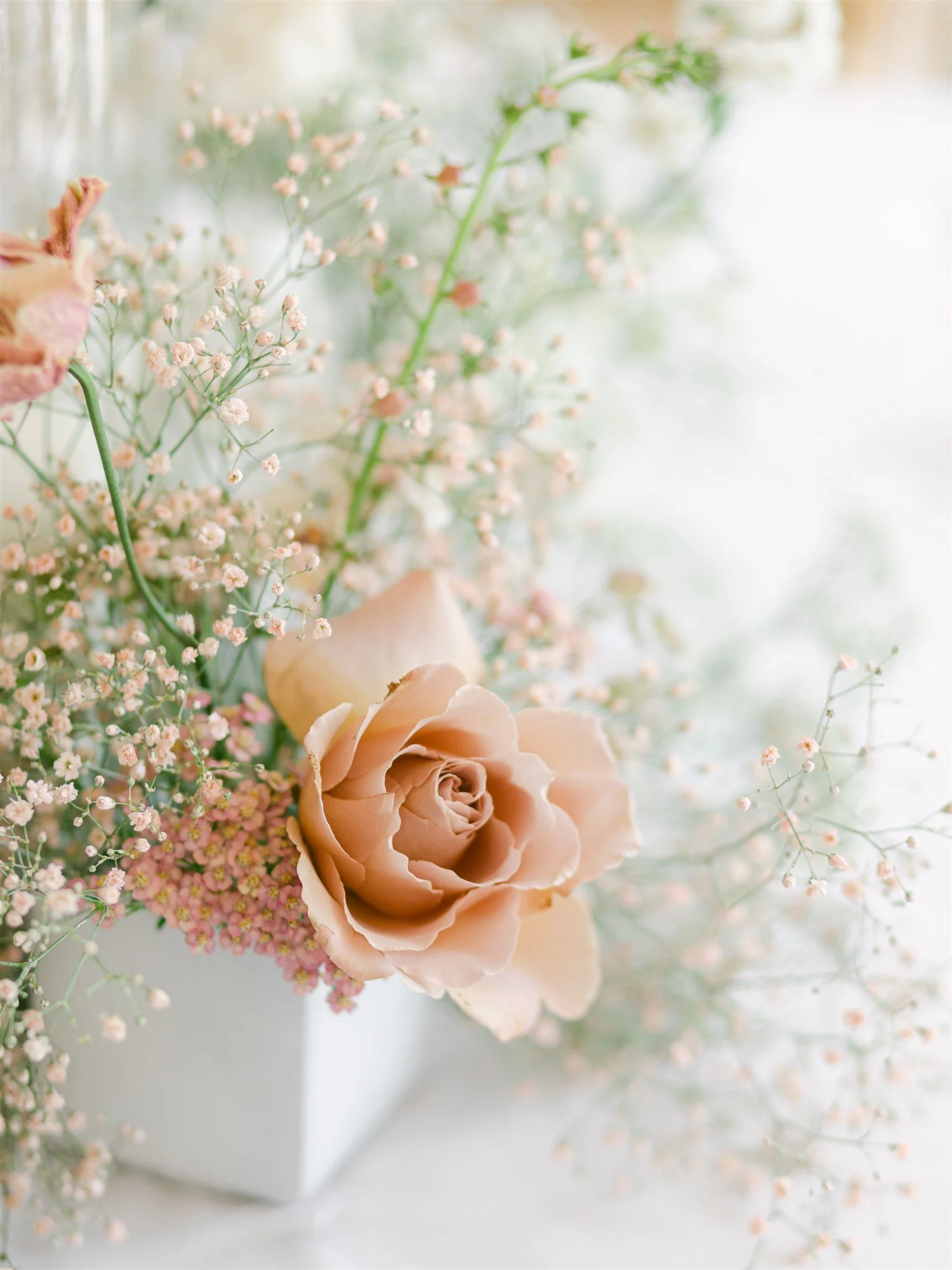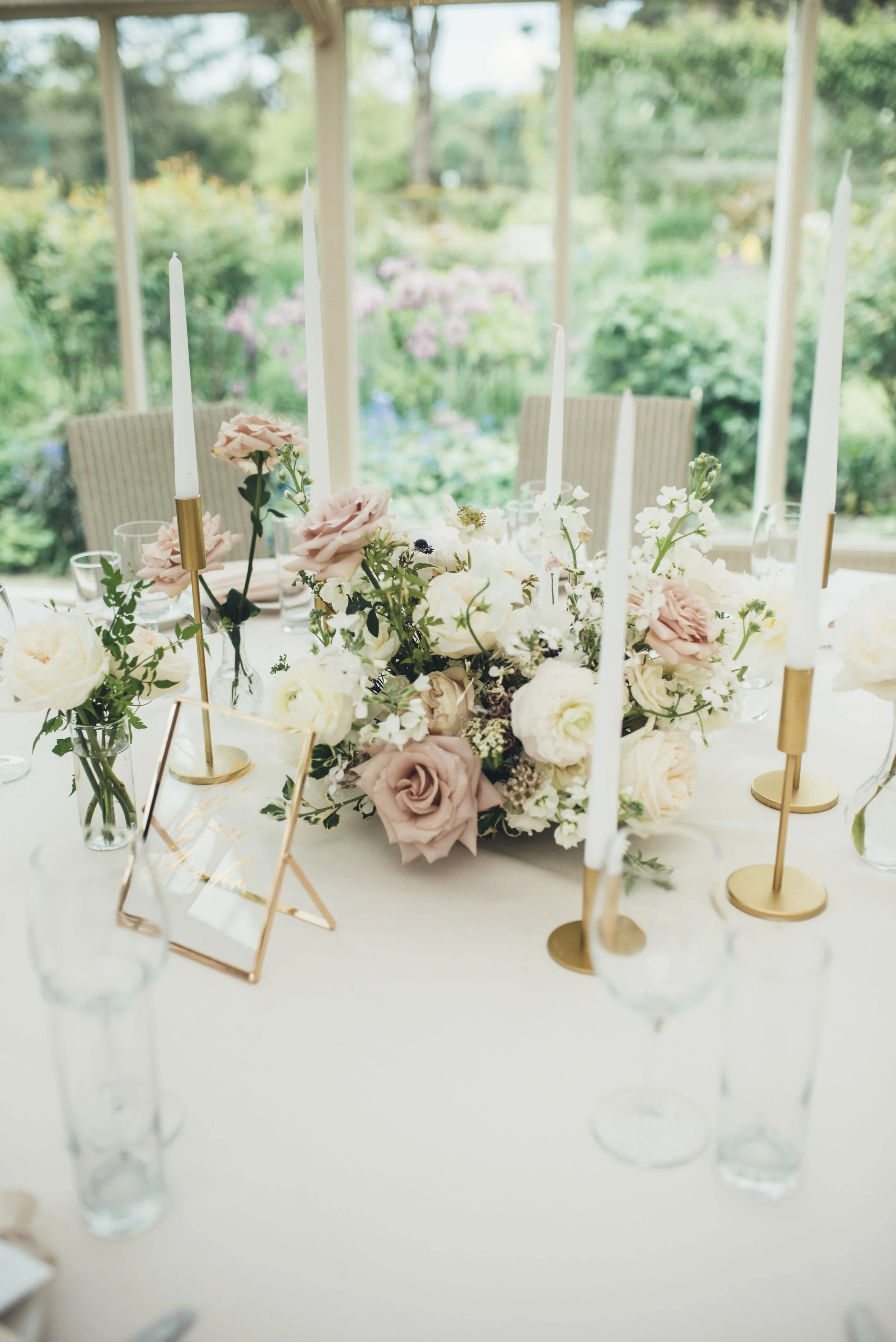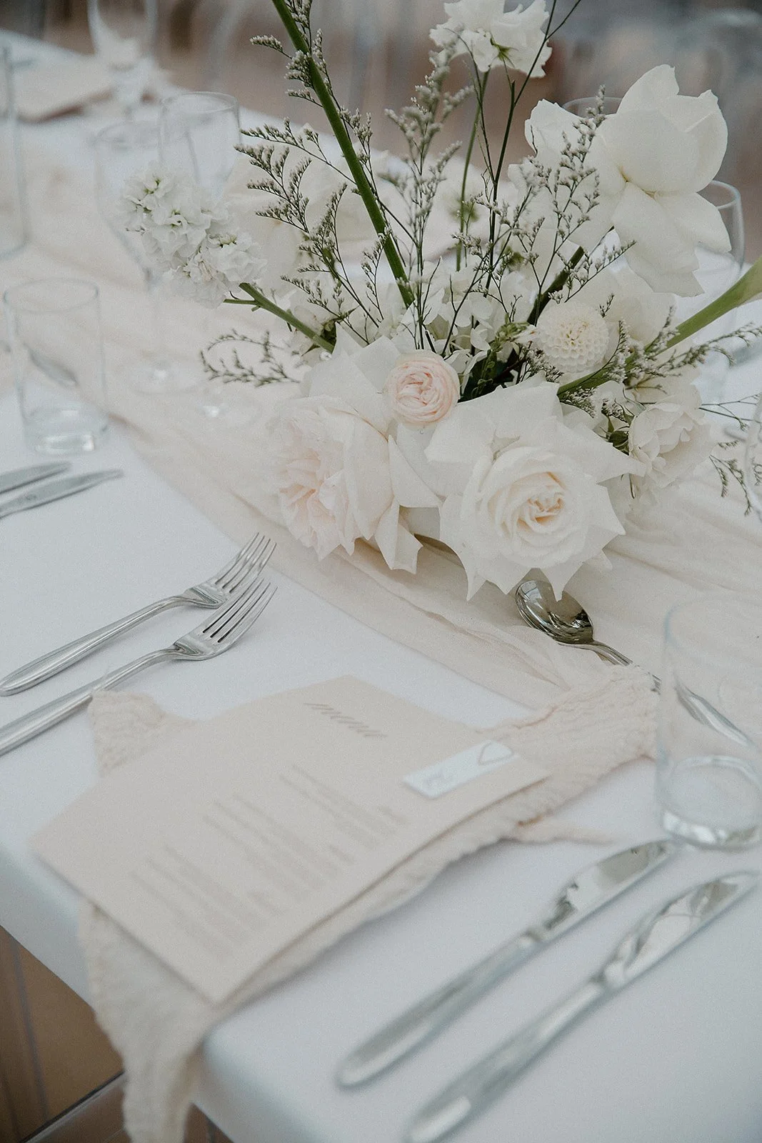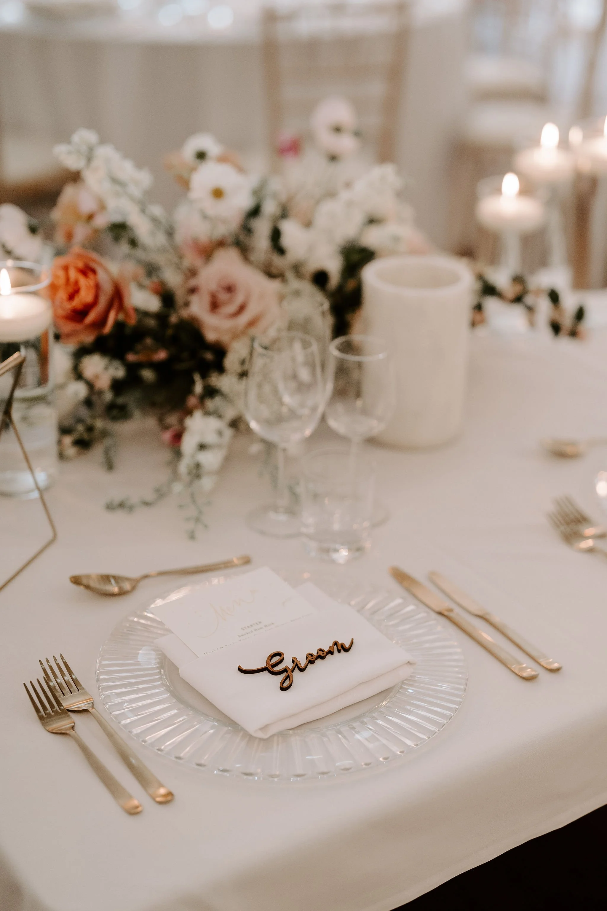 When it comes to centrepieces there’s a lot to think about… Are you having long trestle tables or round? How long are your trestle tables so we can calculate how much floral we can fit in the budget? Which vase, vessel or accessory colour suits your wedding theme? White, Terracotta, Gold, Grey, Glass or Black? Alternatively opt for floral made in an undetectable, disposable dish so you can take the flowers home with you in tact.