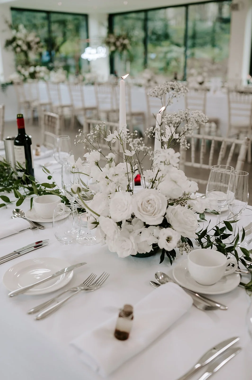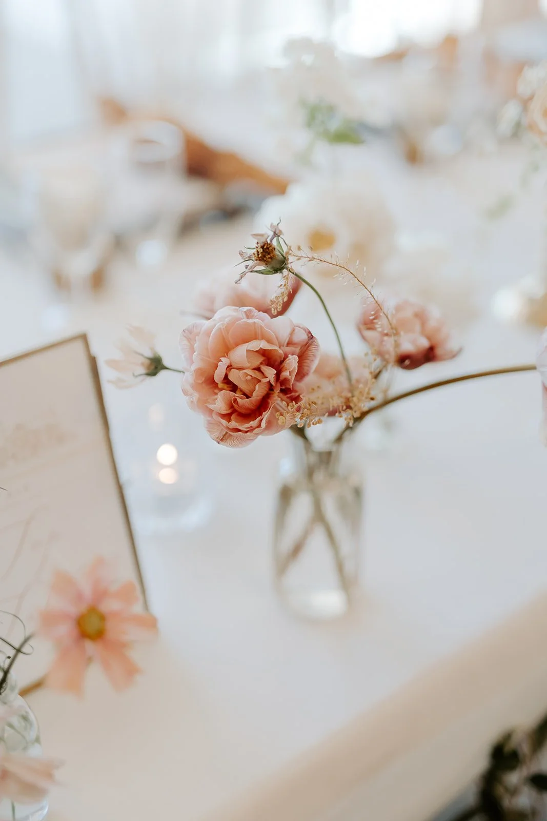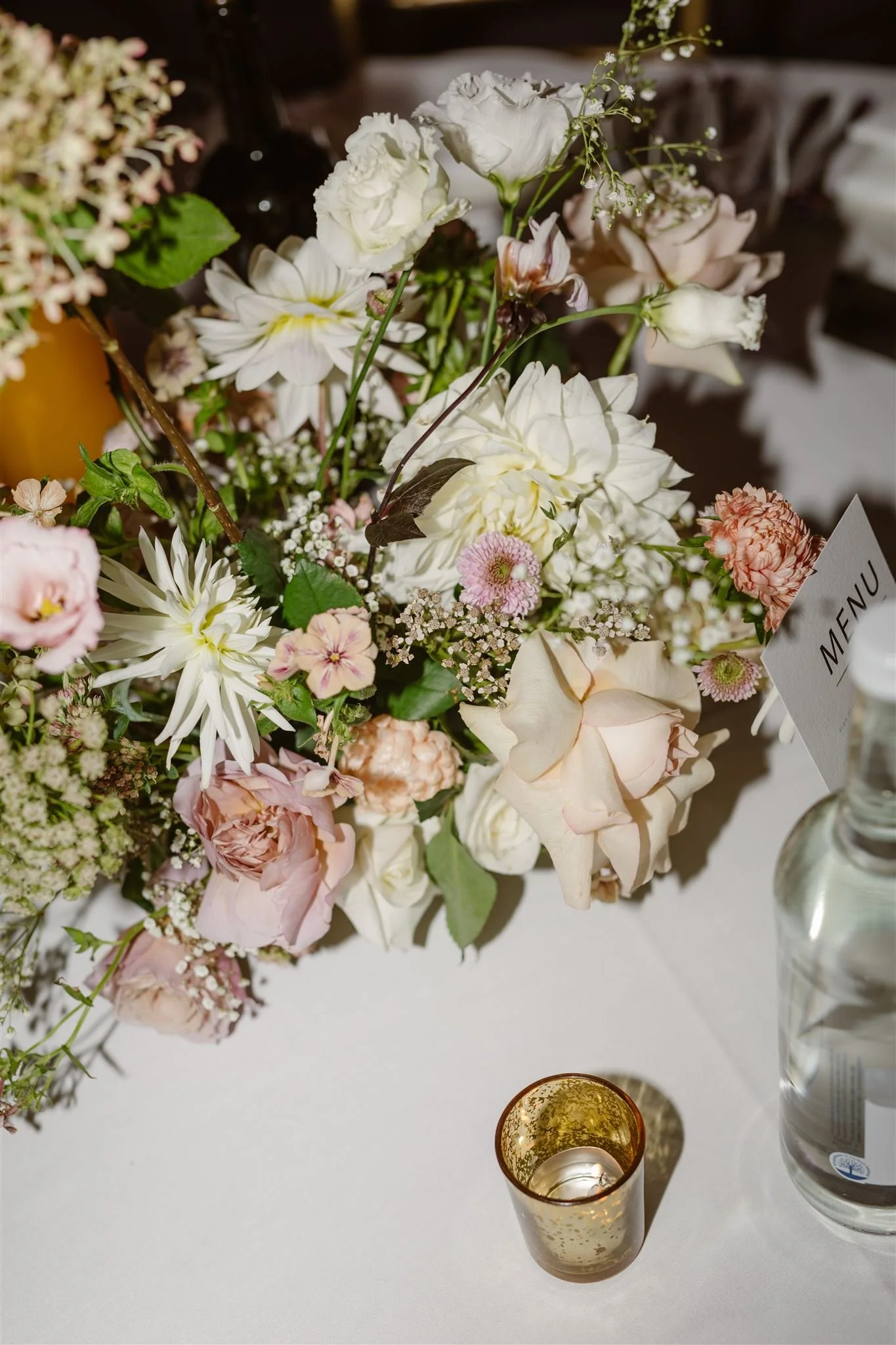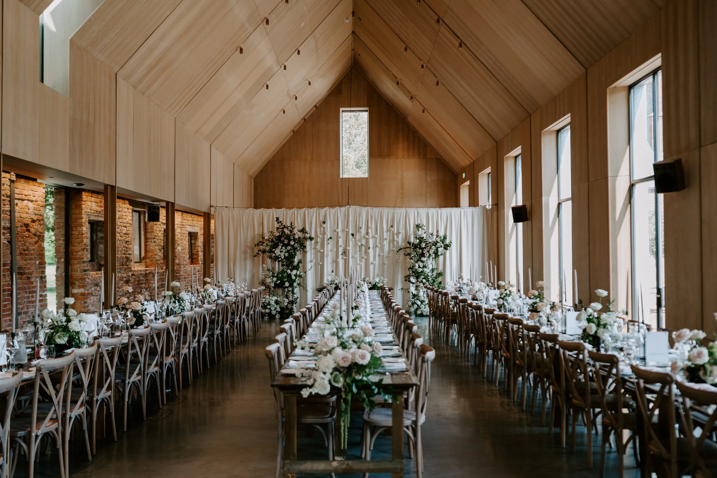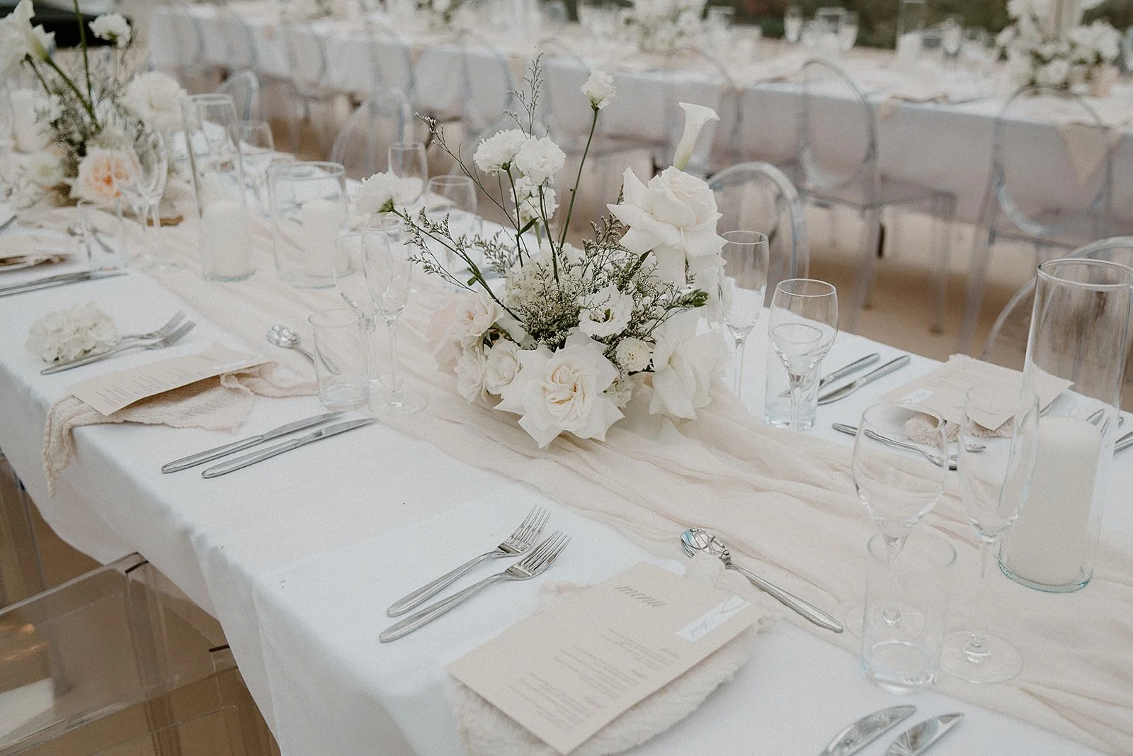 When it comes to centrepieces there’s a lot to think about… Are you having long trestle tables or round? How long are your trestle tables so we can calculate how much floral we can fit in the budget? Which vase, vessel or accessory colour suits your wedding theme? White, Terracotta, Gold, Grey, Glass or Black? Alternatively opt for floral made in an undetectable, disposable dish so you can take the flowers home with you in tact.