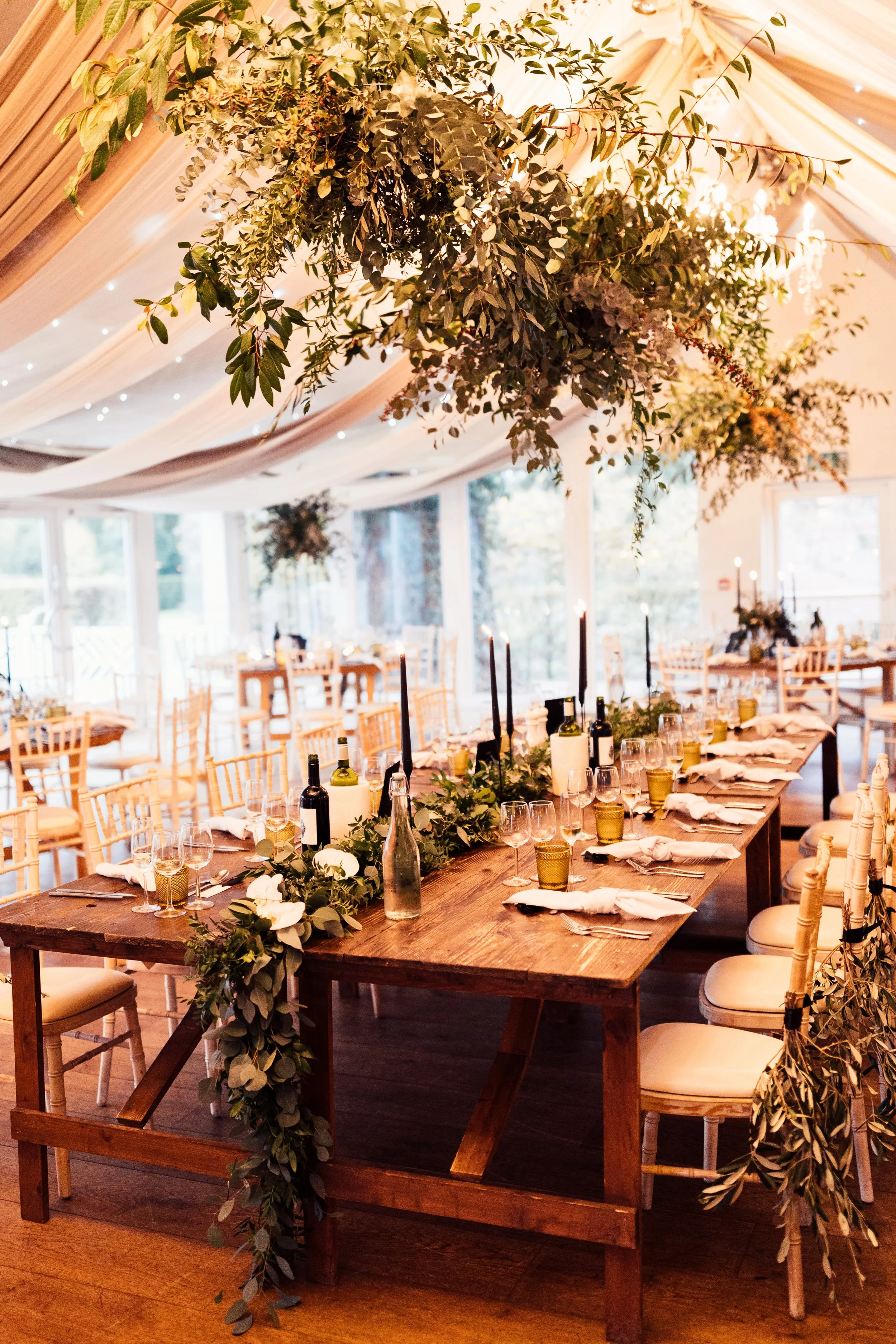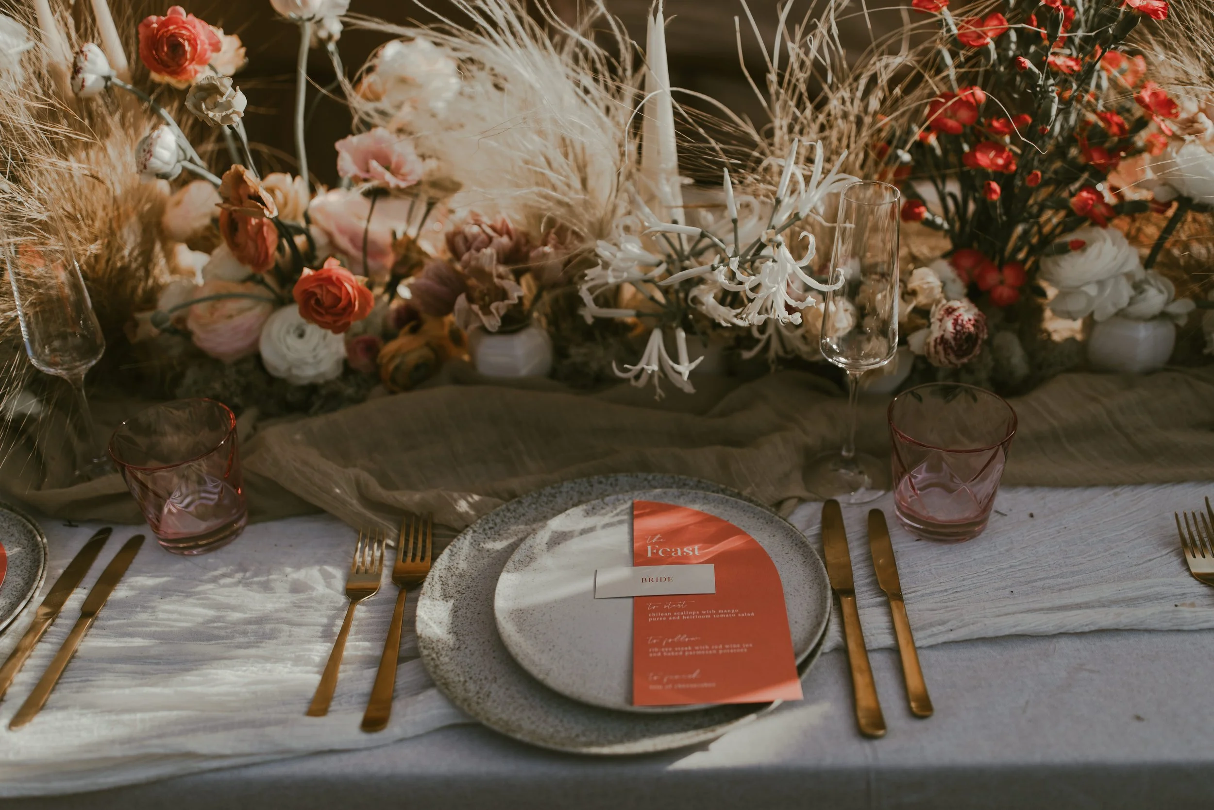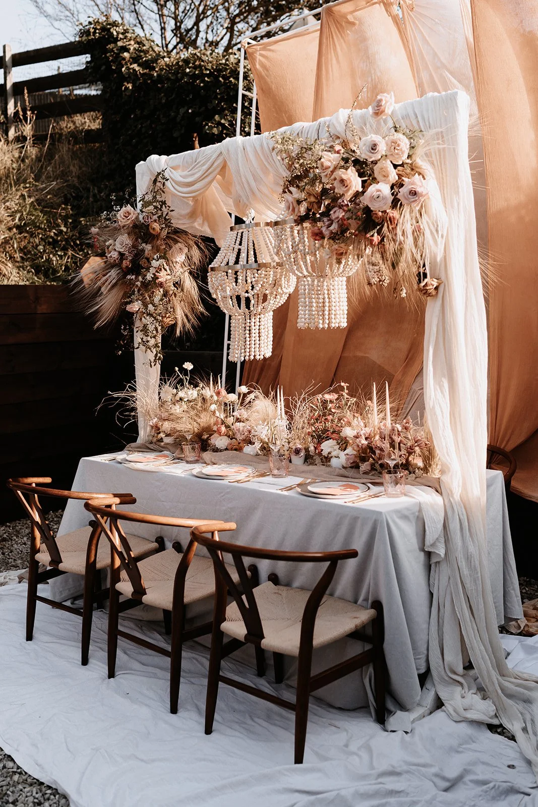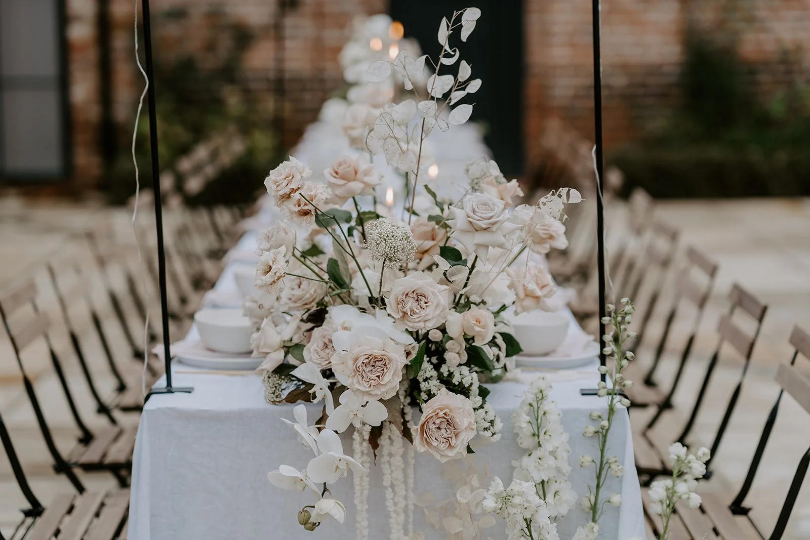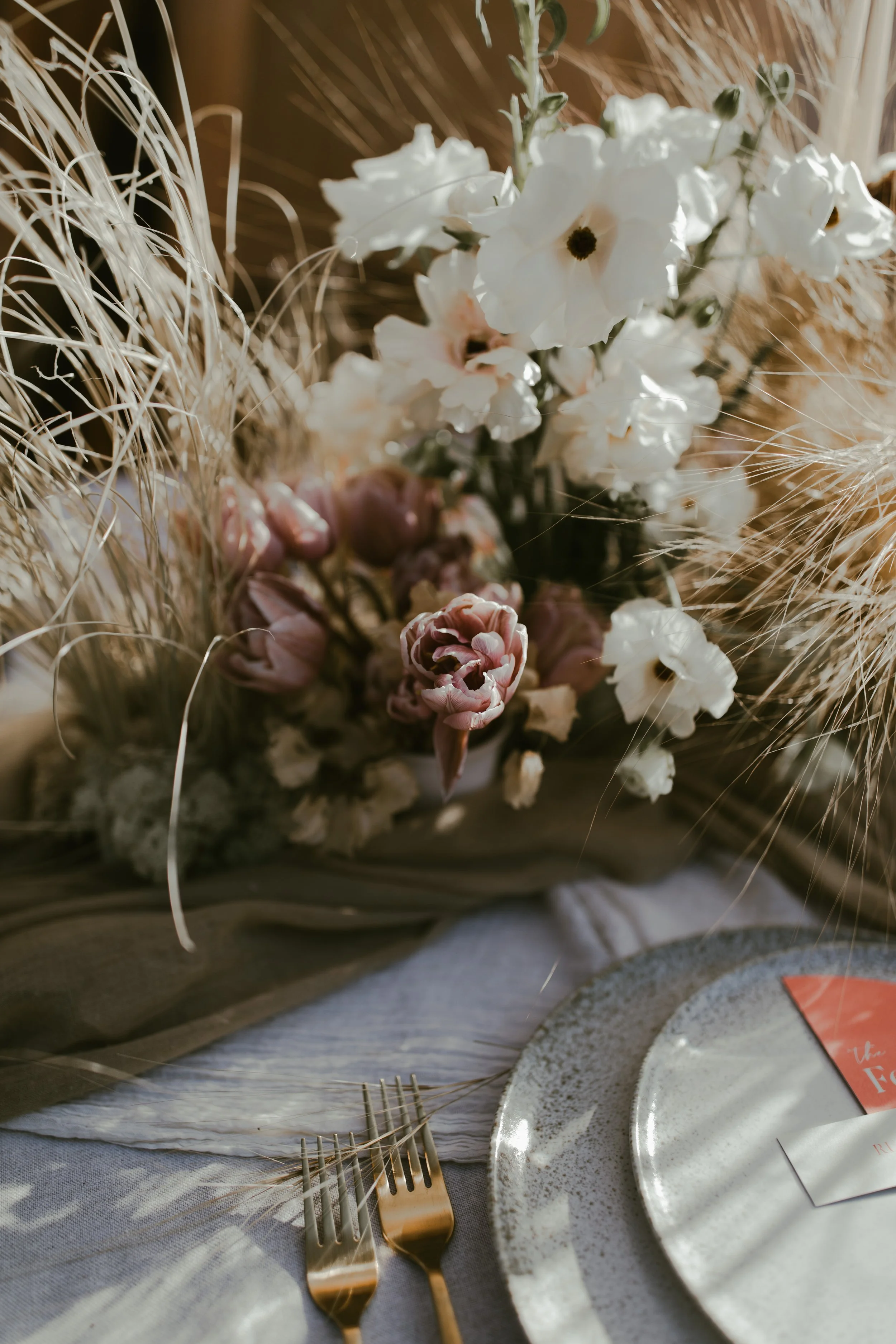 When it comes to centrepieces there’s a lot to think about… Are you having long trestle tables or round? How long are your trestle tables so we can calculate how much floral we can fit in the budget? Which vase, vessel or accessory colour suits your wedding theme? White, Terracotta, Gold, Grey, Glass or Black? Alternatively opt for floral made in an undetectable, disposable dish so you can take the flowers home with you in tact.