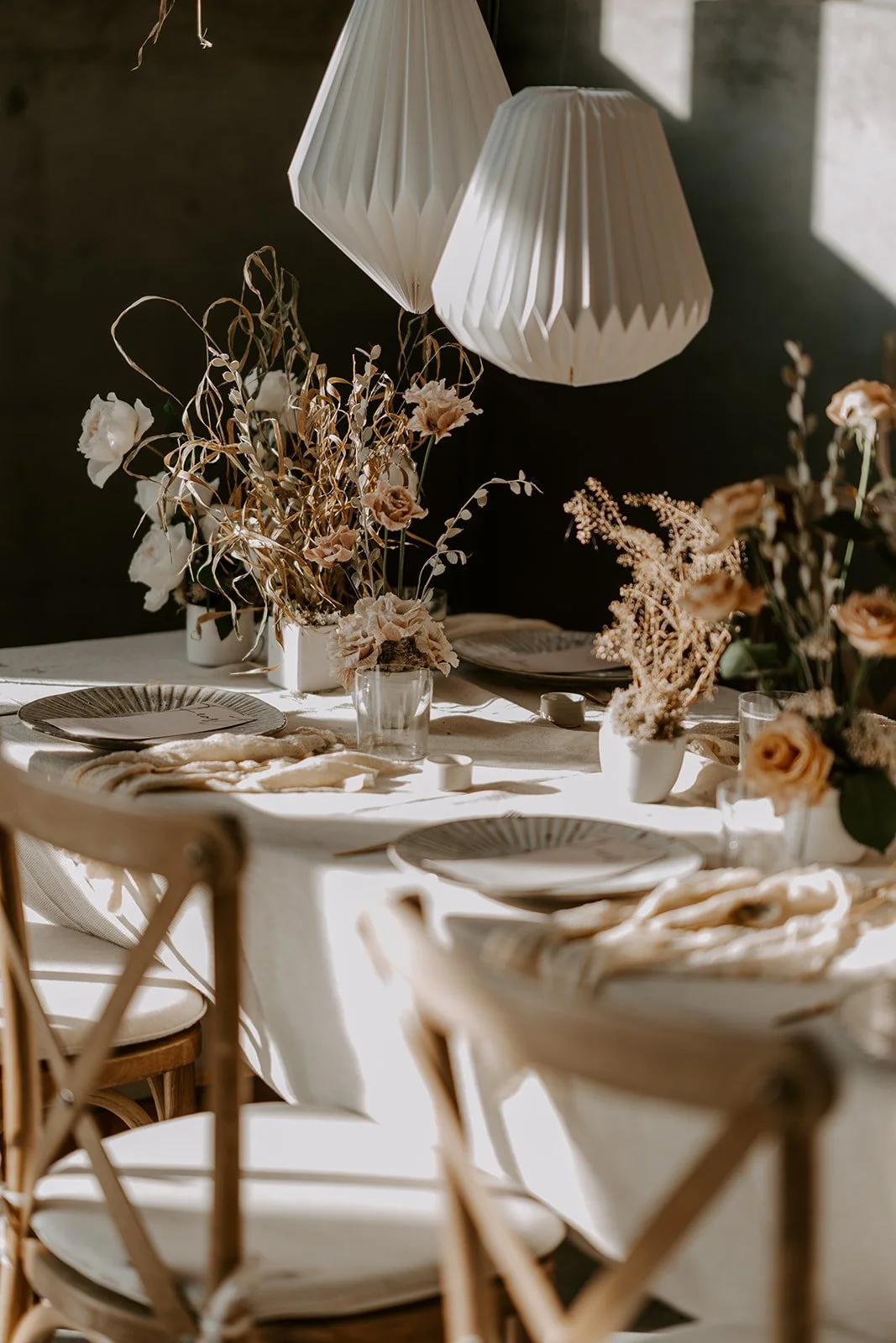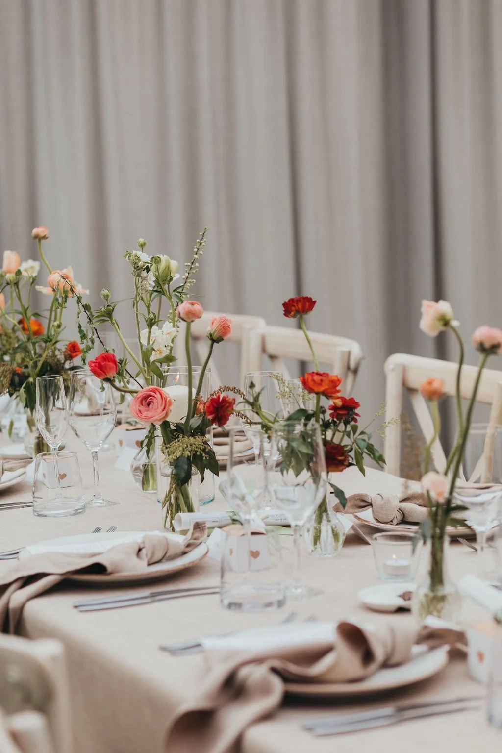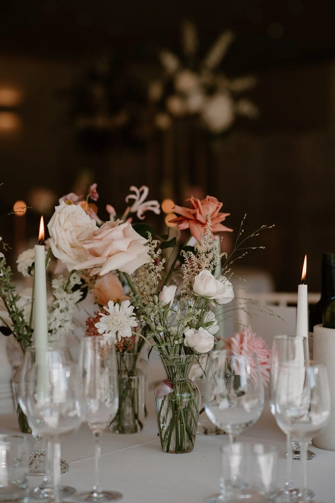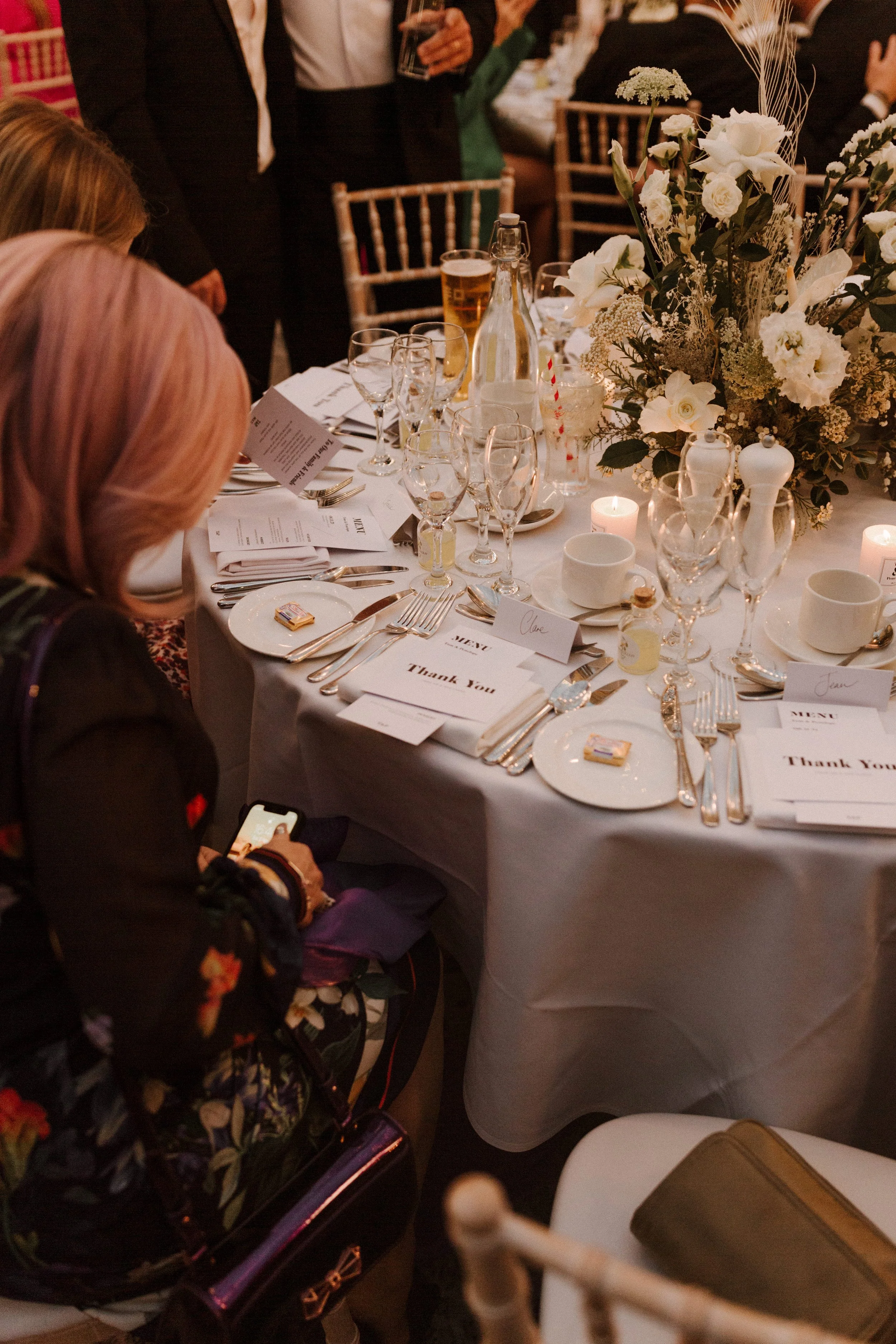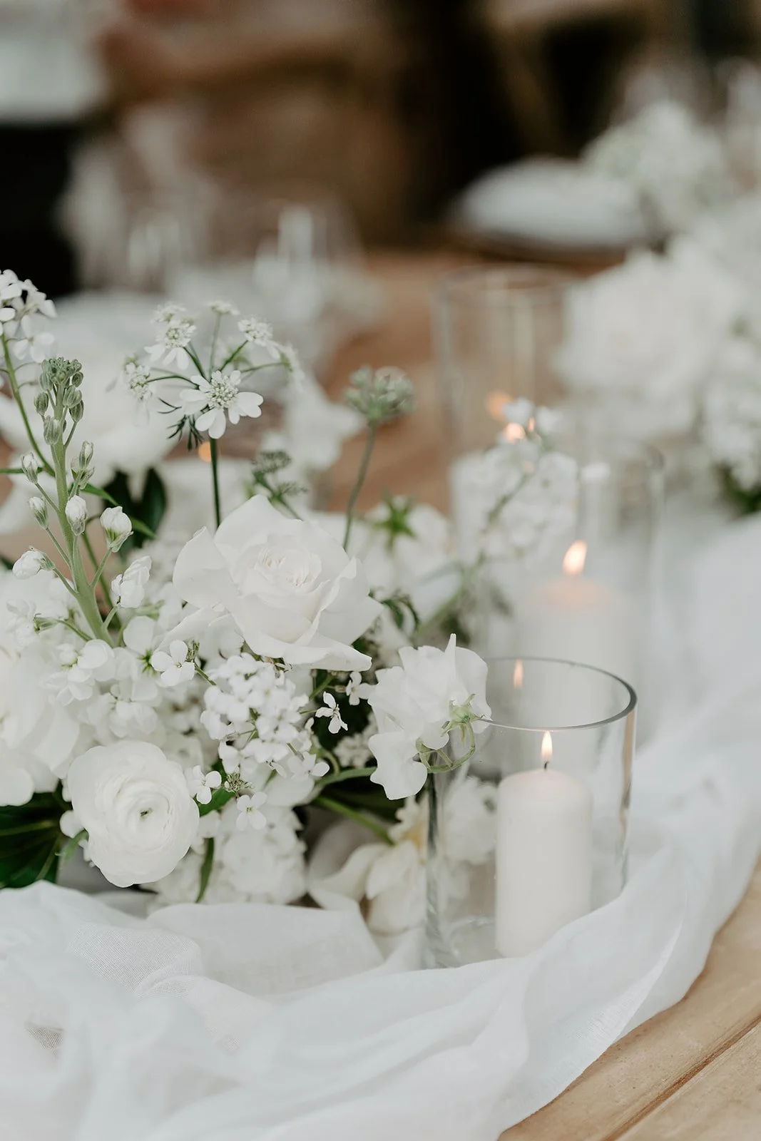 When it comes to centrepieces there’s a lot to think about… Are you having long trestle tables or round? How long are your trestle tables so we can calculate how much floral we can fit in the budget? Which vase, vessel or accessory colour suits your wedding theme? White, Terracotta, Gold, Grey, Glass or Black? Alternatively opt for floral made in an undetectable, disposable dish so you can take the flowers home with you in tact.