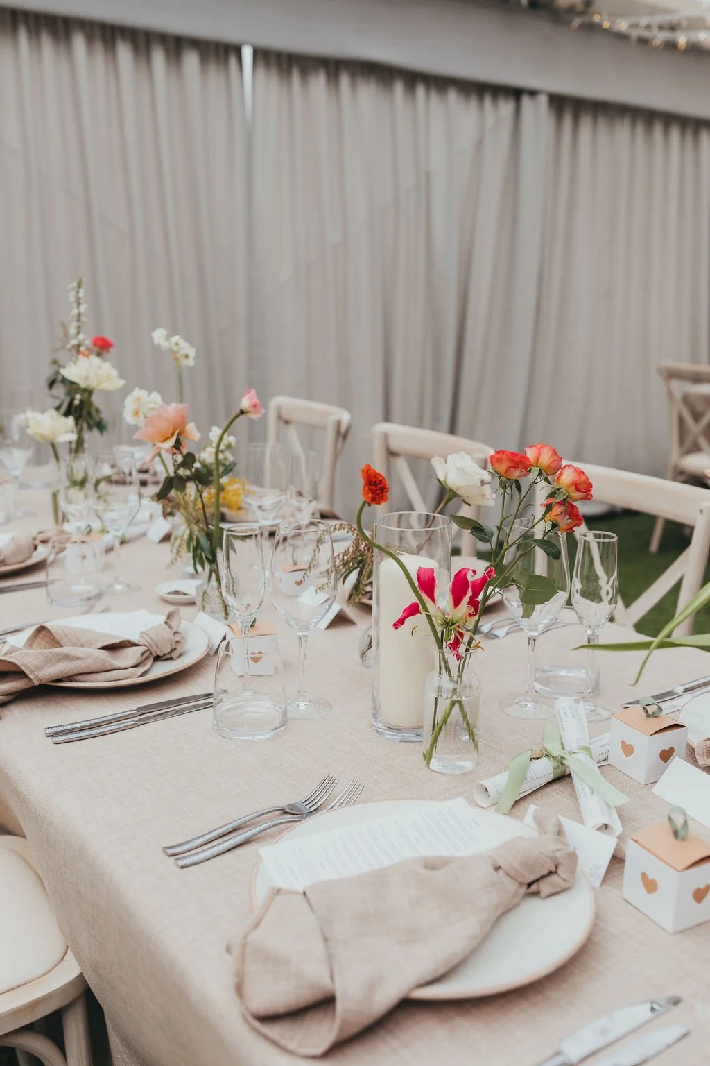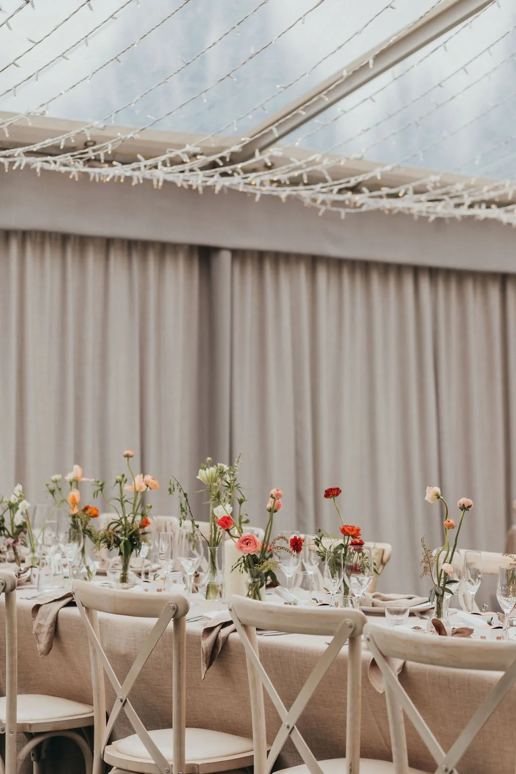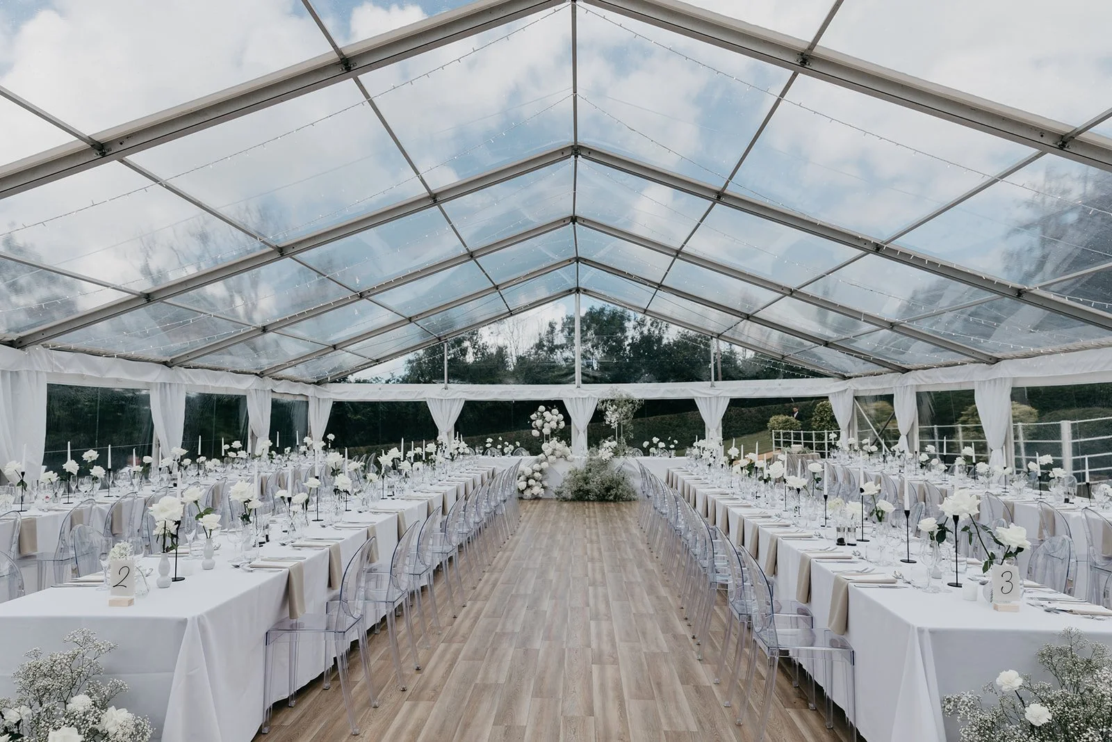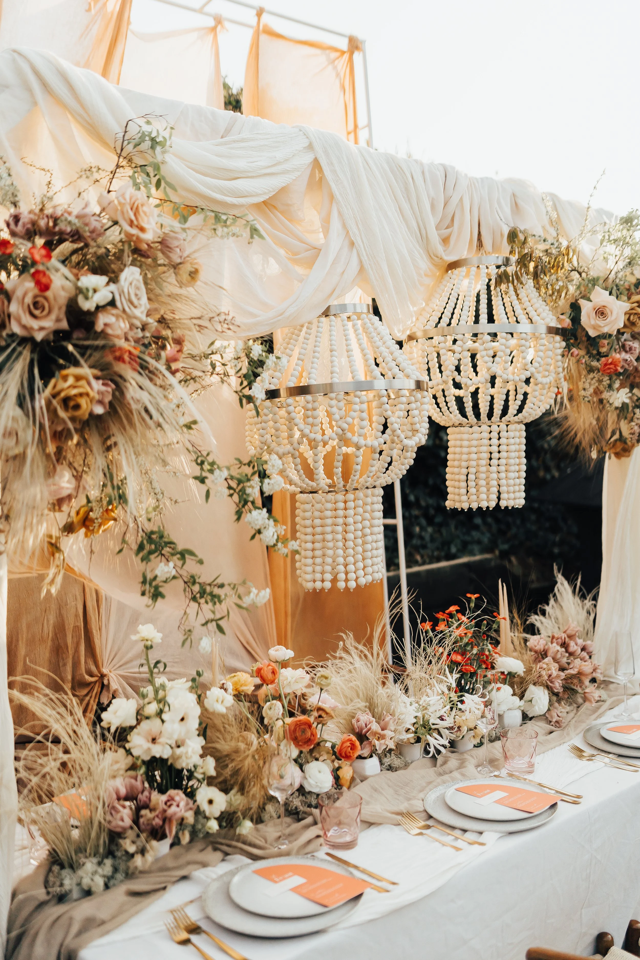 When it comes to centrepieces there’s a lot to think about… Are you having long trestle tables or round? How long are your trestle tables so we can calculate how much floral we can fit in the budget? Which vase, vessel or accessory colour suits your wedding theme? White, Terracotta, Gold, Grey, Glass or Black? Alternatively opt for floral made in an undetectable, disposable dish so you can take the flowers home with you in tact.