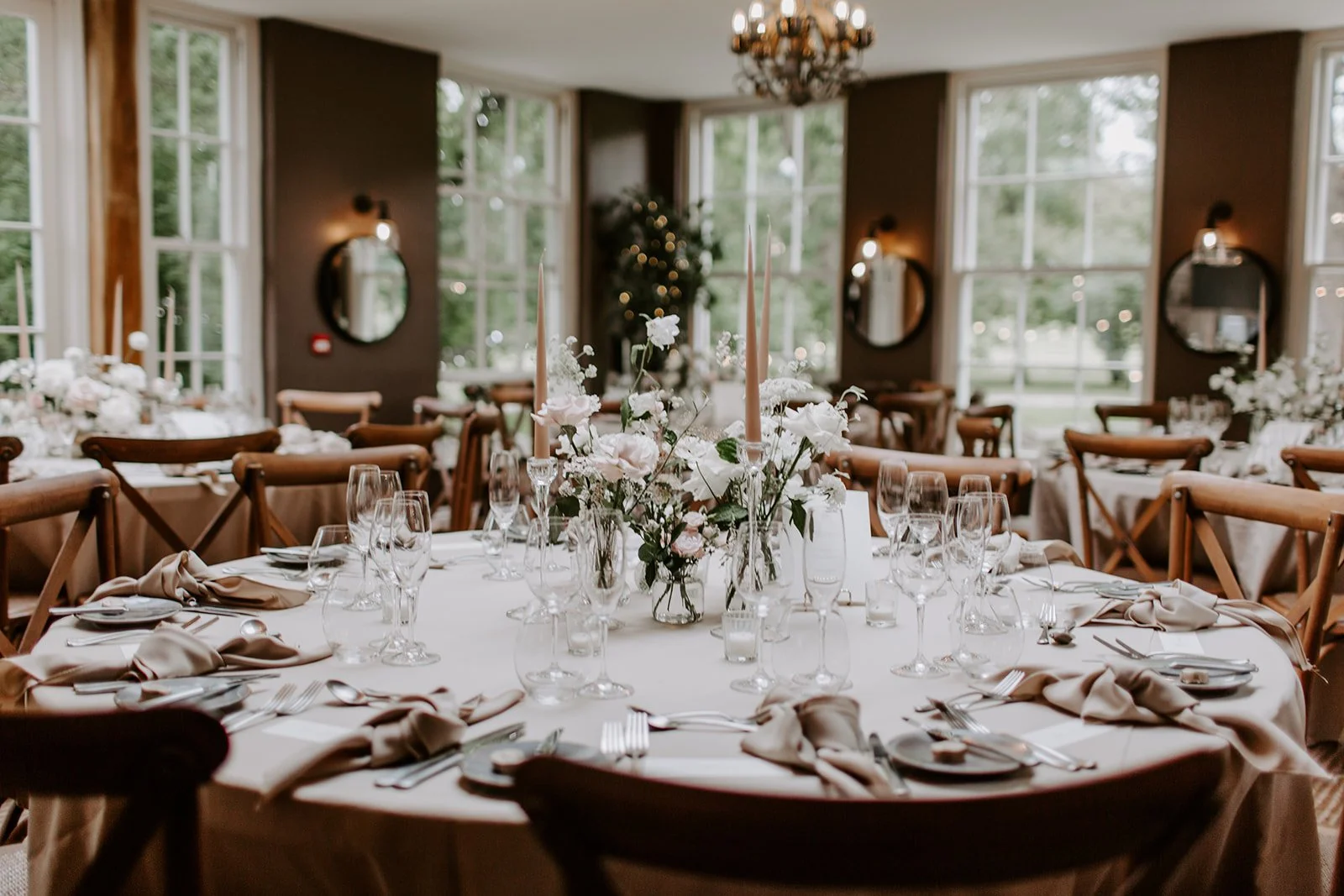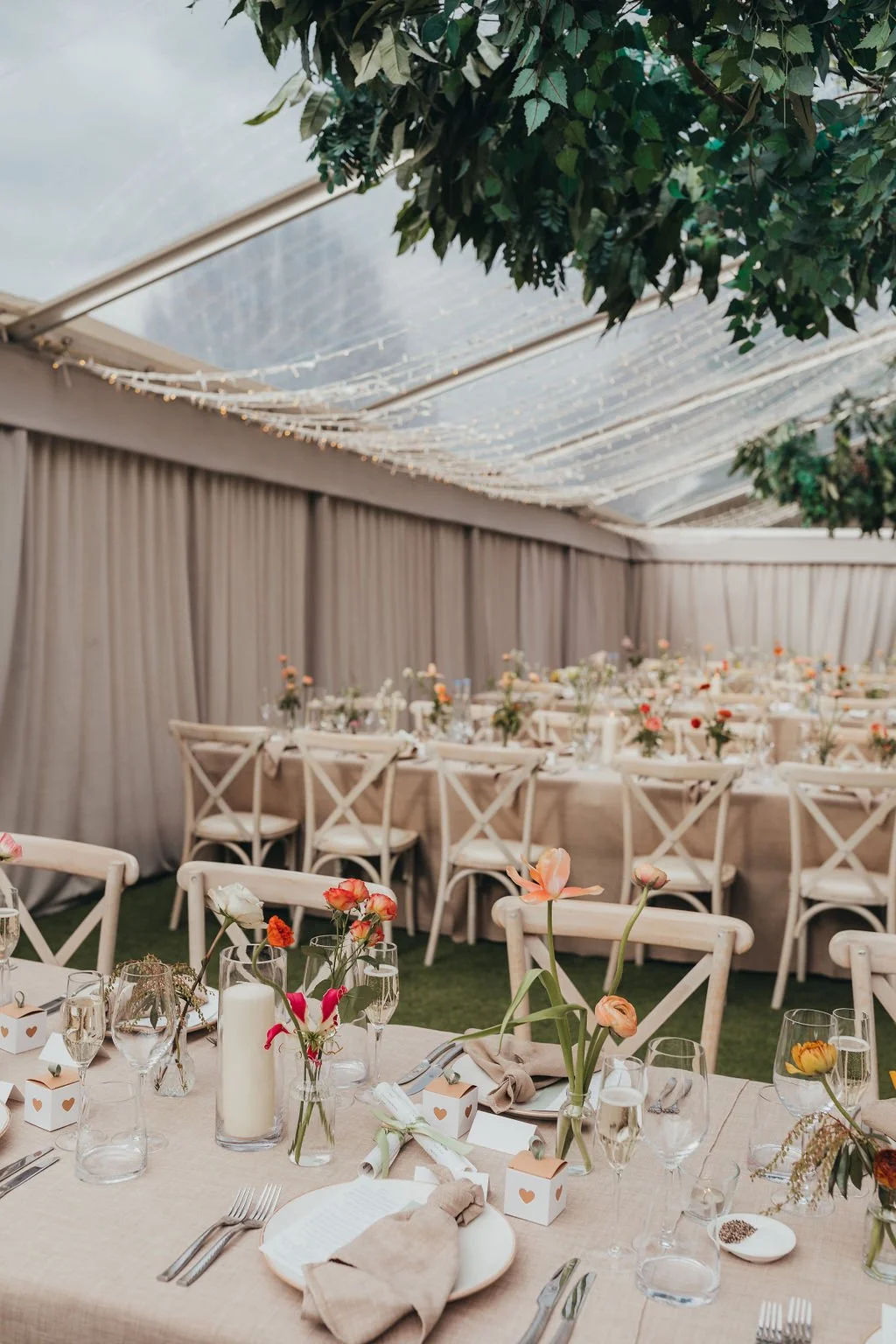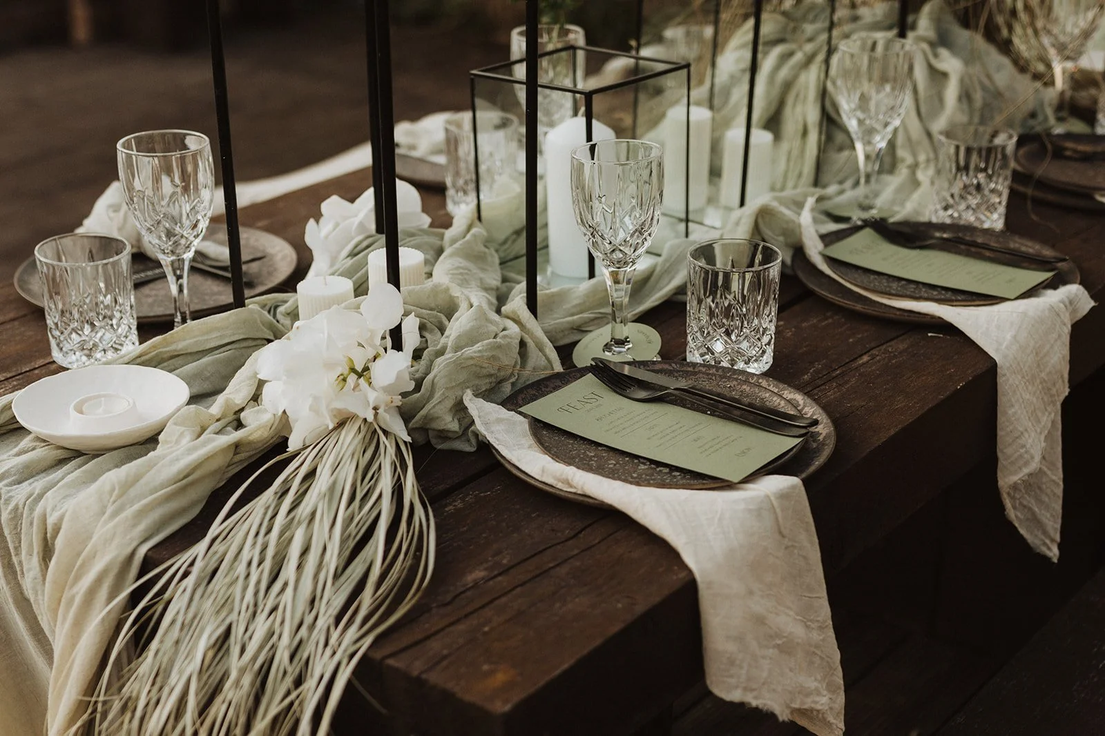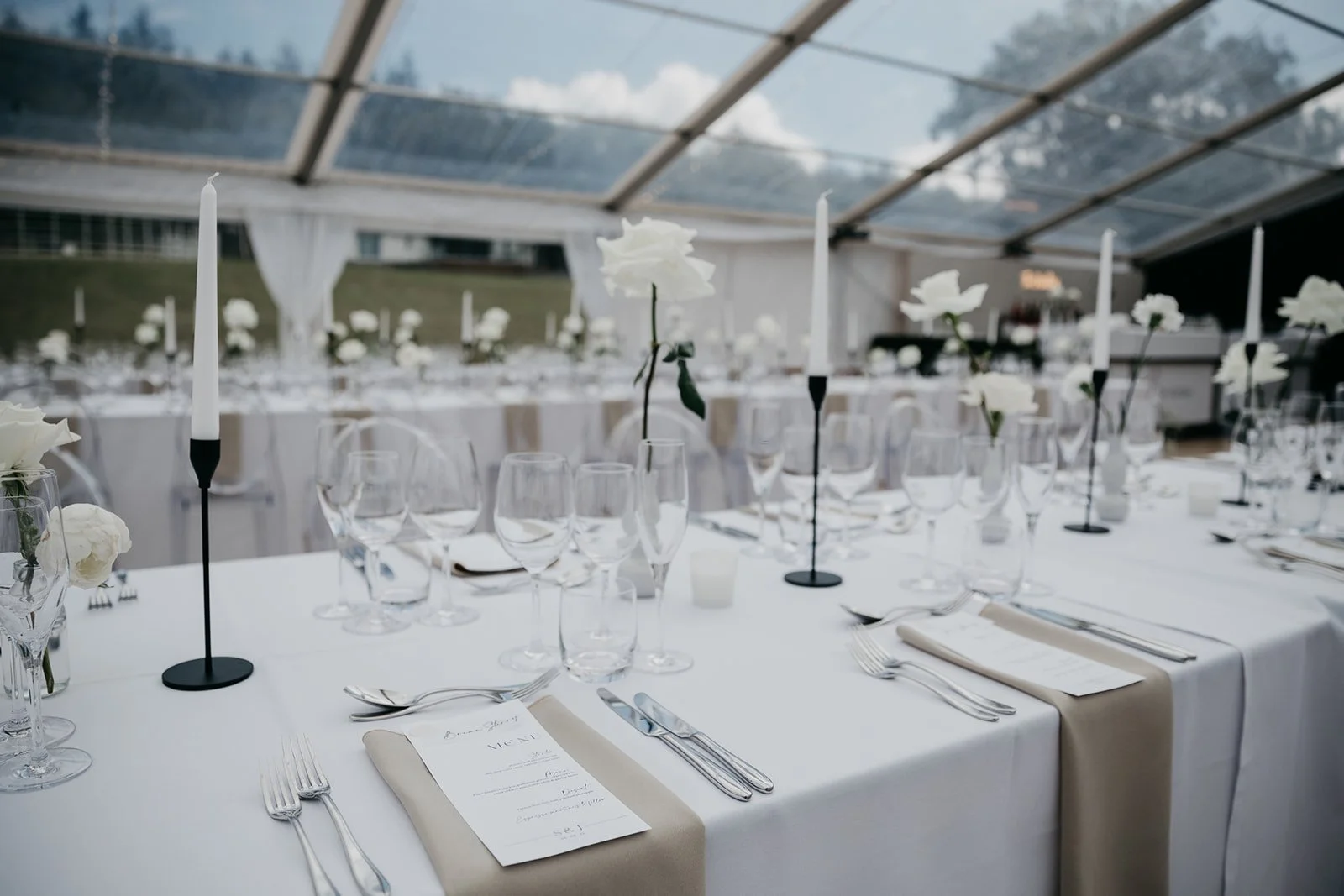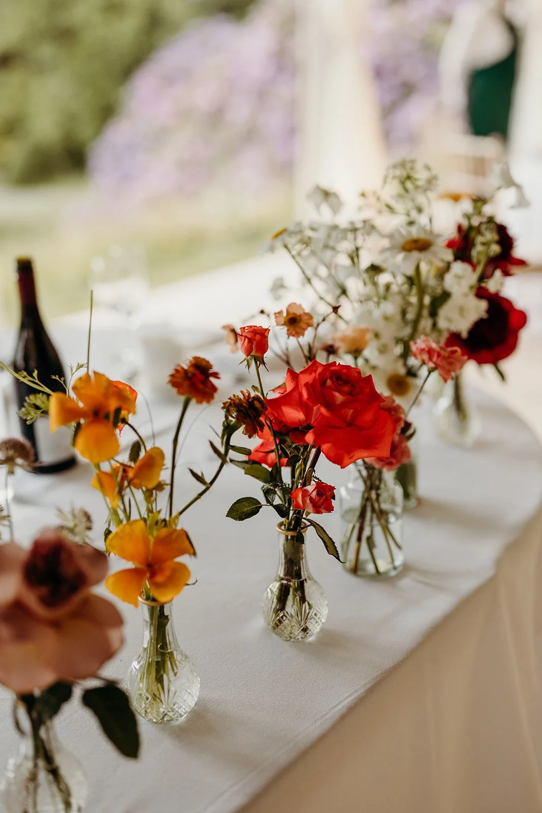 When it comes to centrepieces there’s a lot to think about… Are you having long trestle tables or round? How long are your trestle tables so we can calculate how much floral we can fit in the budget? Which vase, vessel or accessory colour suits your wedding theme? White, Terracotta, Gold, Grey, Glass or Black? Alternatively opt for floral made in an undetectable, disposable dish so you can take the flowers home with you in tact.